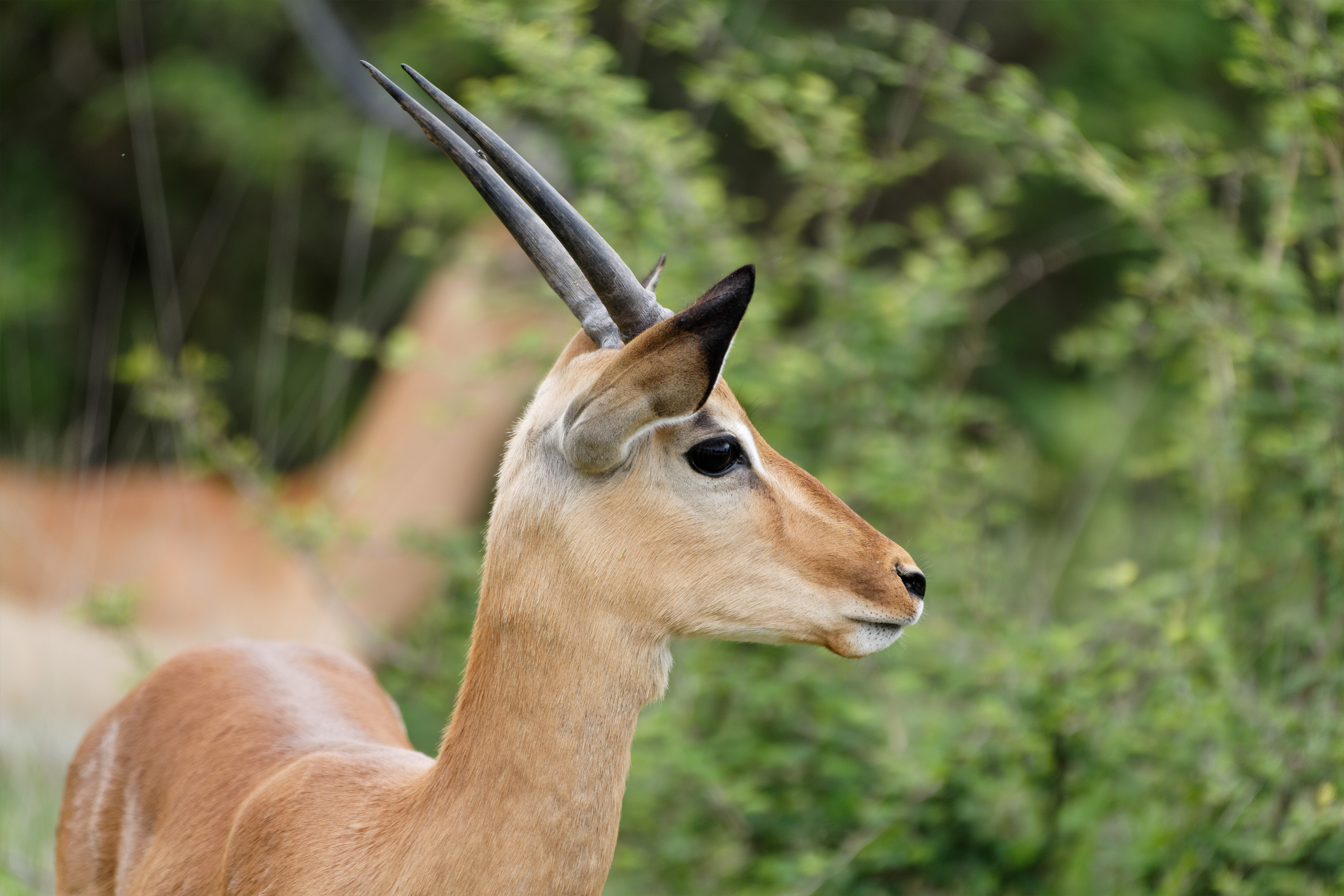 Gespannt vom ersten Meter an, beobachten wir intensiv die beiden Seiten der Straße. Und die ersten Impalas und Springböcke lassen nicht lange auf sich warten. Im Augenwinkel sehen wir einen schimmernden Streifen vorbeiziehen - ein Lilac Breasted Roller, der sich in einiger Entfernung im Geäst niederlässt.
