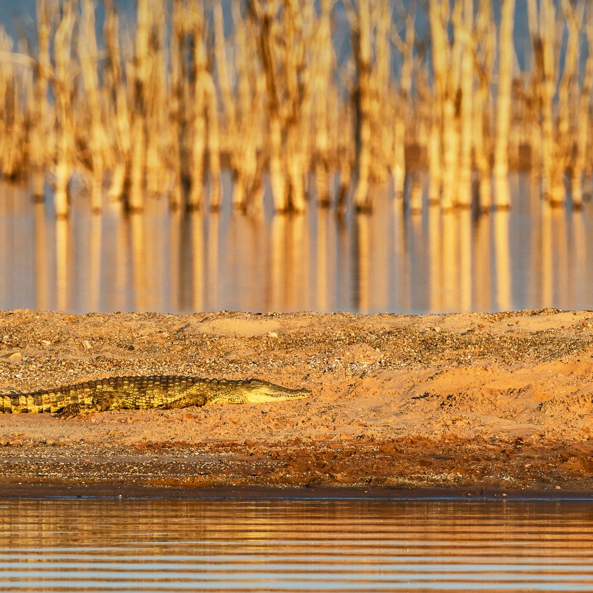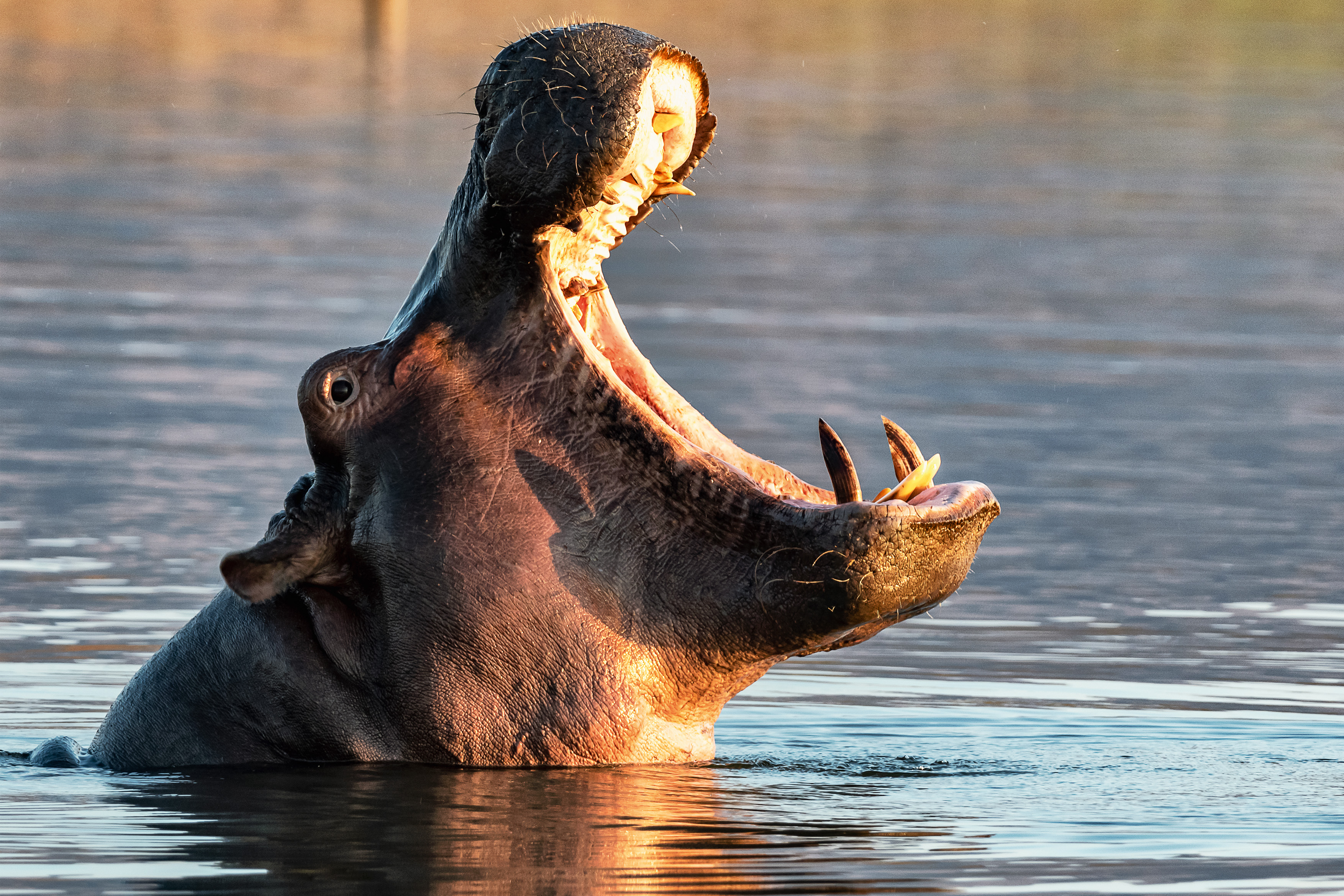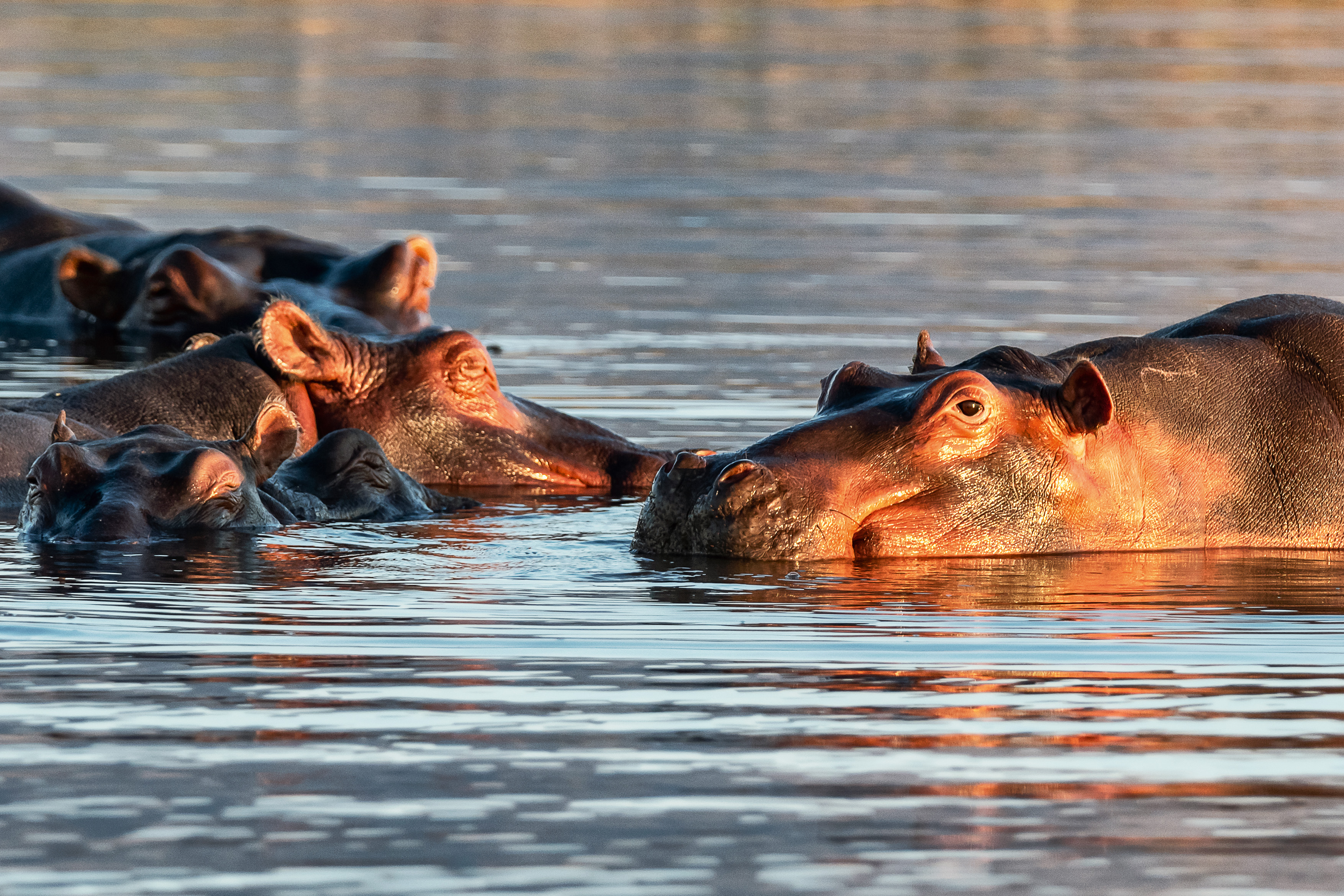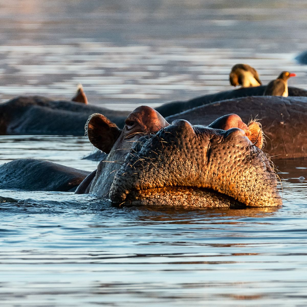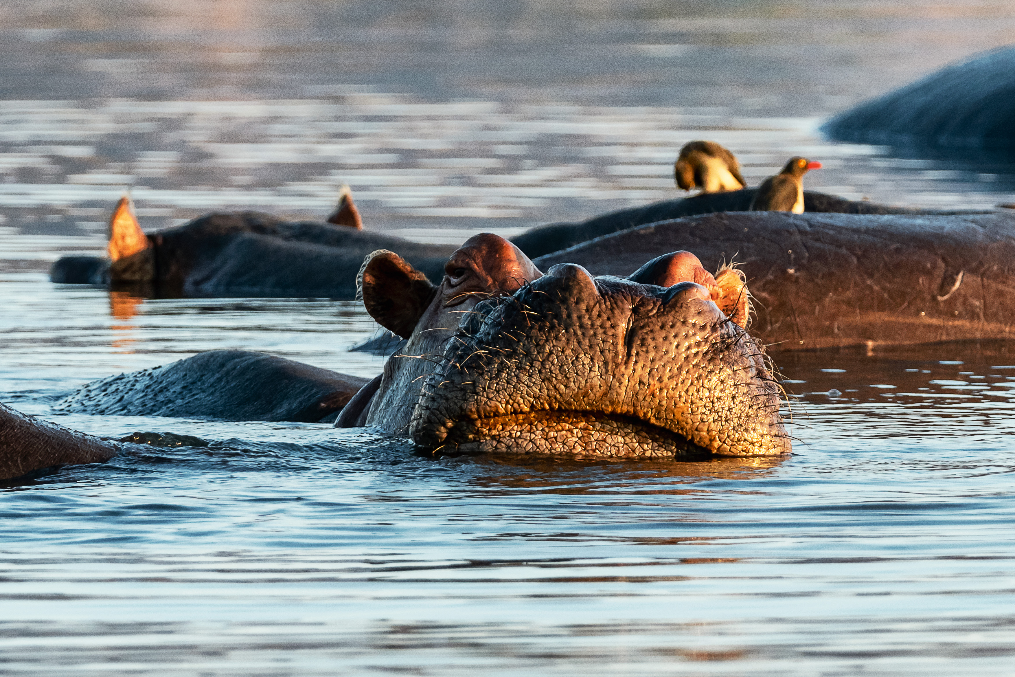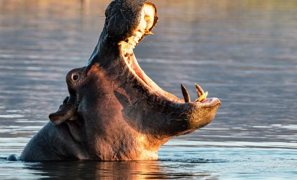 Im weichen Licht der Morgensonne sehen wir Zebras und Antilopen. Elefanten natürlich auch. Aber heute haben wir nicht viel Glück – es ist einfach nichts los, außer einem alten Hippo-Bullen.