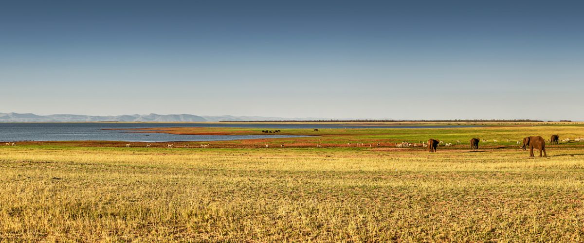 Jeden Sommer zieht sich die Wasserlinie des Lake Karibas extrem zurück und gibt eine große Graslandschaft frei, auf der man dann viele Tiere beobachten kann.