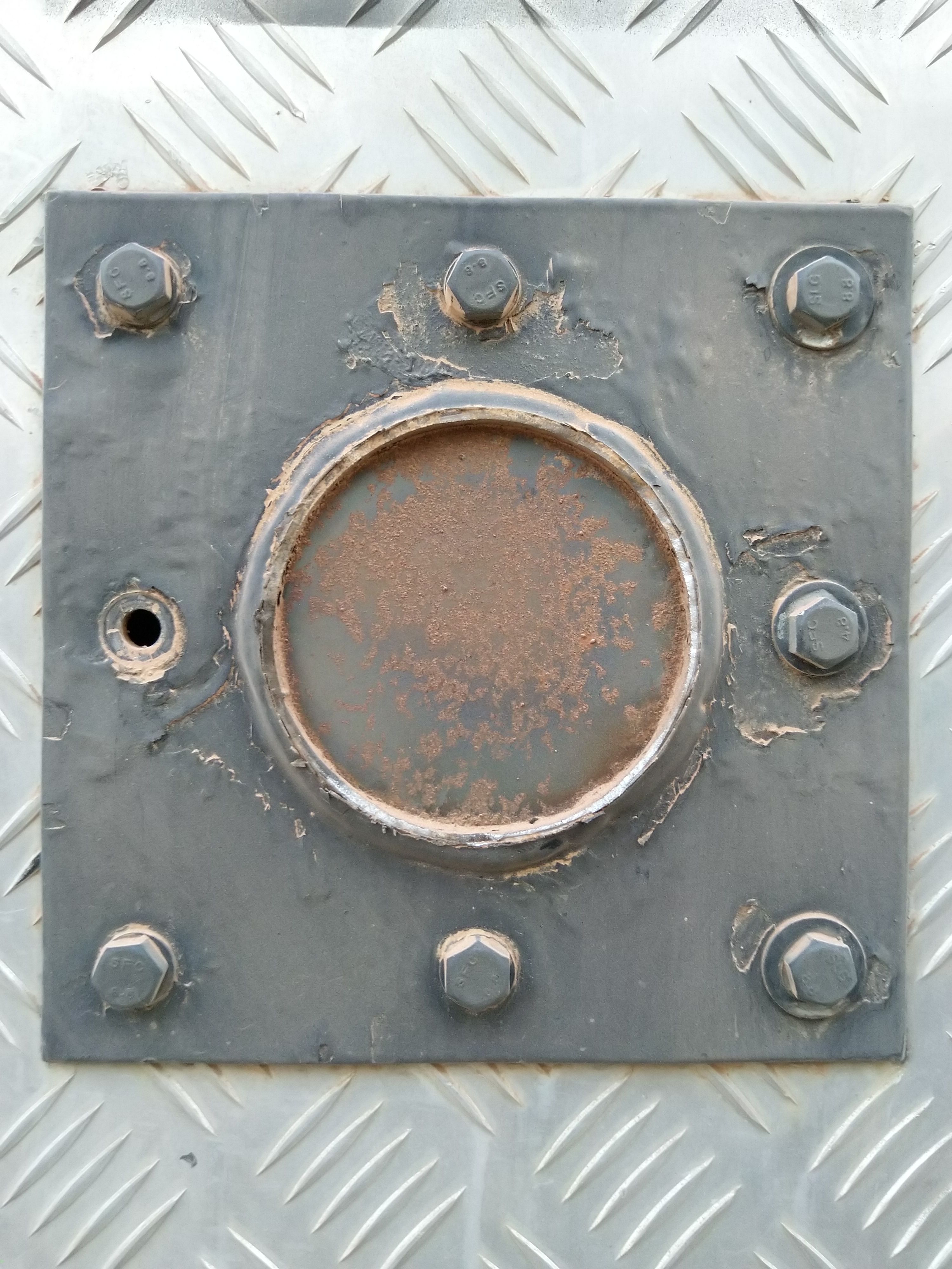 Egal, wir werden es nie wissen, Fakt ist: es ist weg. Die Schweißnaht der Felgenaufhängung ist sauber gebrochen, die Halteplatte immer noch 1A an die Hecktür des Aufbaus geschraubt. Das wird Ärger geben bei der Rückgabe. Aber zu ändern ist es nicht.