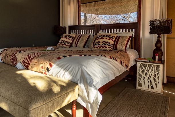 Es geht nochmals 4 km durchs Gelände als wir endlich vor dem Tor der Masuma River Lodge stehen und warten, bis uns geöffnet wird. Es schlüpft aber nur der Wächter heraus und fragt was wir denn wollen. Hmm, Quizfrage? Wir haben eine Reservierung. Sagt der 'Nö'. Wir lassen die Managerin kommen, die auch von nichts weiß, aber als wir ihr unseren Voucher zeigen, lässt sie uns aufs Gelände. Sie wüsste von nichts, aber wir bekommen unseren Bungalow zugewiesen und stellen dabei fest: der ganze Laden ist so gut wie leer. Nur neben uns stehen zwei weitere Toyota Hilux 4x4 mit Dachzelt von Britz. Aha, auch so Verrückte wie wir und lernen schnell, dass es ebenfalls Deutsche sind.